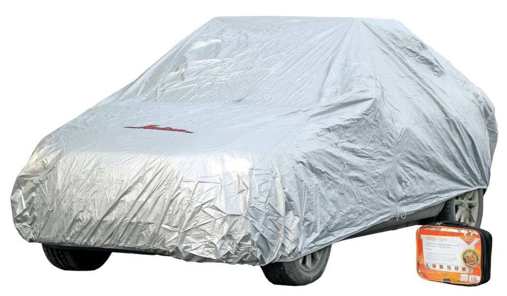 Чехол-тент на автомобиль защитный, размер S (455х186х120см), цвет серый, молния для двери, универсальный
