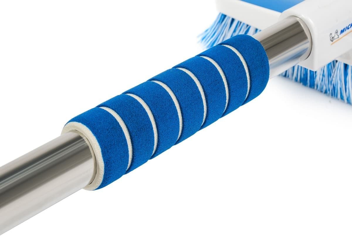 - Фиксаторы телескопической трубы выполнены из качественных материалов, что значительно увеличивает срок использования щетки.