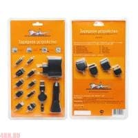Применяется для зарядки мобильных телефонов и устройств Nokia (2 типа), Motorola (4 типа), Samsung (2 типа), Siemens (типа C55), Sony-Ericsson (типа K750), LG, mini USB, MP3 плееры, Black Berry, iPod/iPhone от гнезда прикуривателя автомобиля (12/24В), сети 110-240В, USB. Комплектуется удобным шнуром – рулеткой.