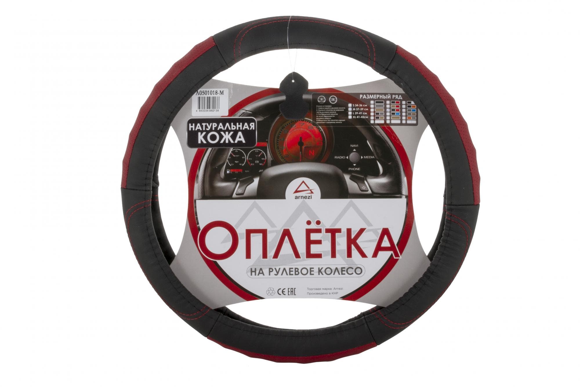 Оплетка на рулевое колесо M 38 см. натуральная кожа черно-красная ARNEZI A0501018