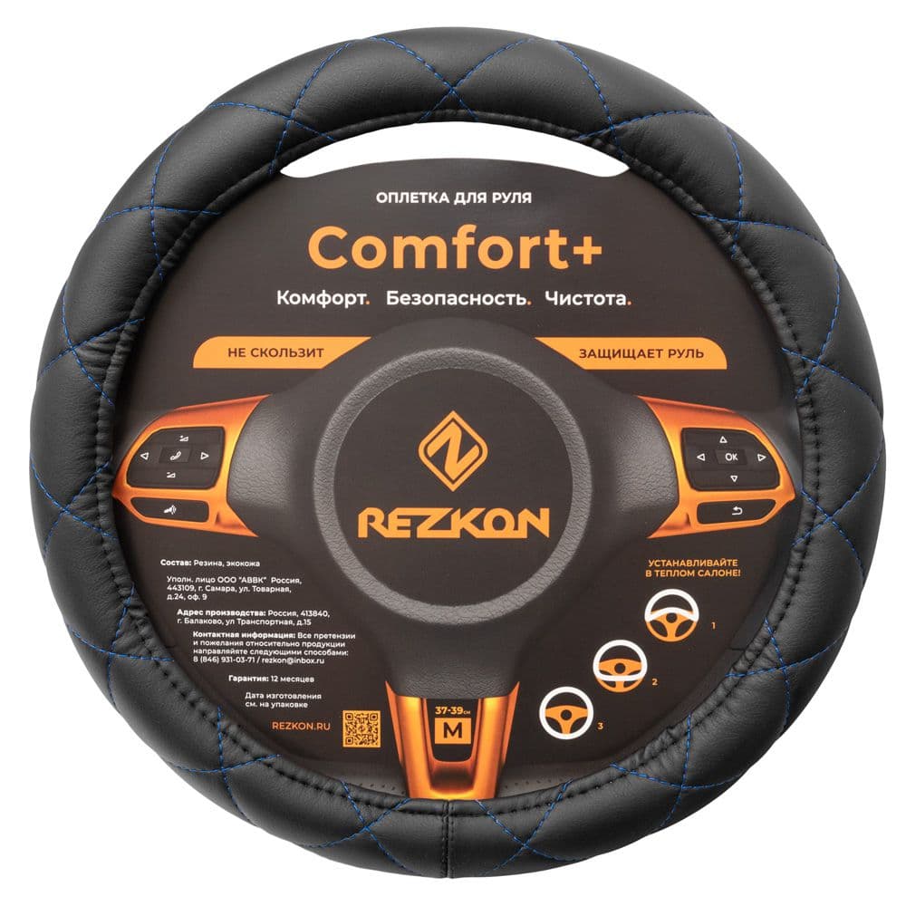 Оплетка для руля каркасная, размер М (37-39см.) алькантара (черный) синий ромб