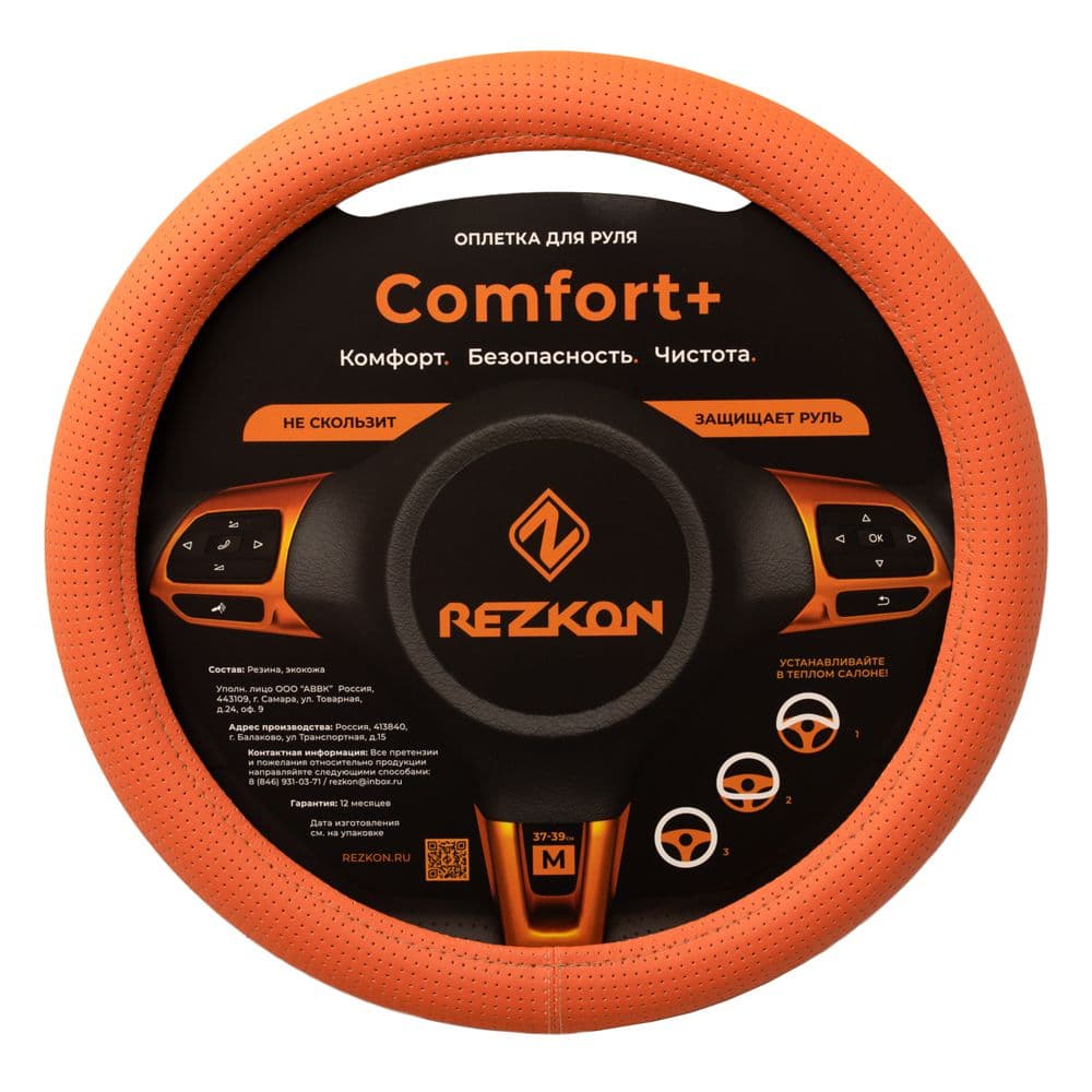 Оплетка для руля каркасная, размер М (37-39см.) «стандарт» экокожа перфорированная (оранжевый)