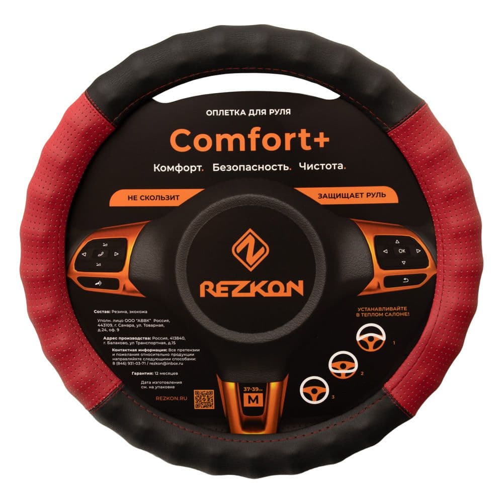 Оплетка для руля рельефная, размер М (37-39см.) экокожа комби (черная+красная)