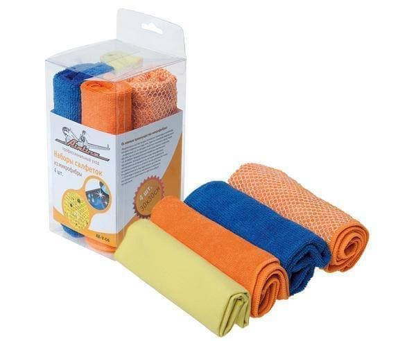 В набор изделий для уборки от AIRLINE входят 4 салфетки различных цветов, упакованные в прозрачную блистерную упаковку прямоугольной формы. Салфетки состоят из микрофибры, которая отличается повышенными влаговпитывающими показателями. Особая поверхность салфеток способна не только устранить загрязнения с плоскости, но и отполировать поверхность изделия.