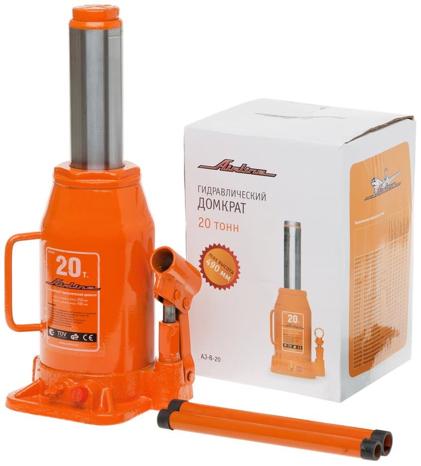 Домкрат бутылочный Airline 20т (MIN - 250 мм, MAX - 490 мм) артикул AJ-B-20