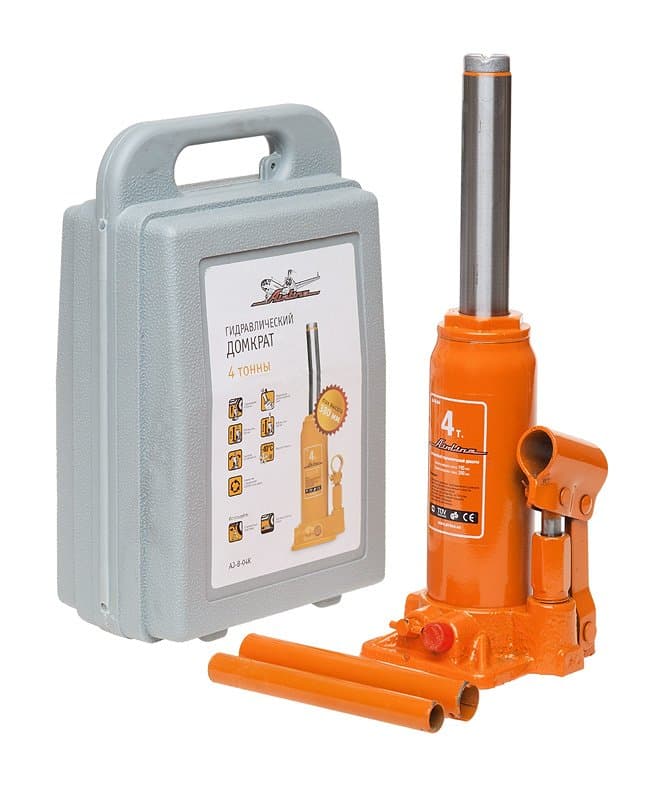 Бутылочные домкраты обладают самыми компактными размерами и простейшей схемой функционирования. Занимает мало места и не требует особых знаний в использовании. Единственное требование – хранение и транспортировка в вертикальном положении. Бутылочные домкраты имеют самый широкий модельный ряд (от 2 до 50т), что делает их незаменимыми при необходимости поднять грузовик или автобус.