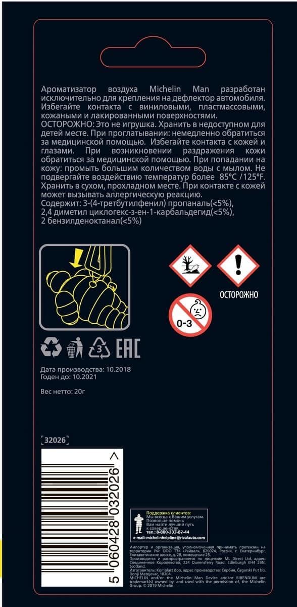 Ароматизатор воздуха MICHELIN 3D Бибендум, крепление на дефлектор "сирень" № 32026