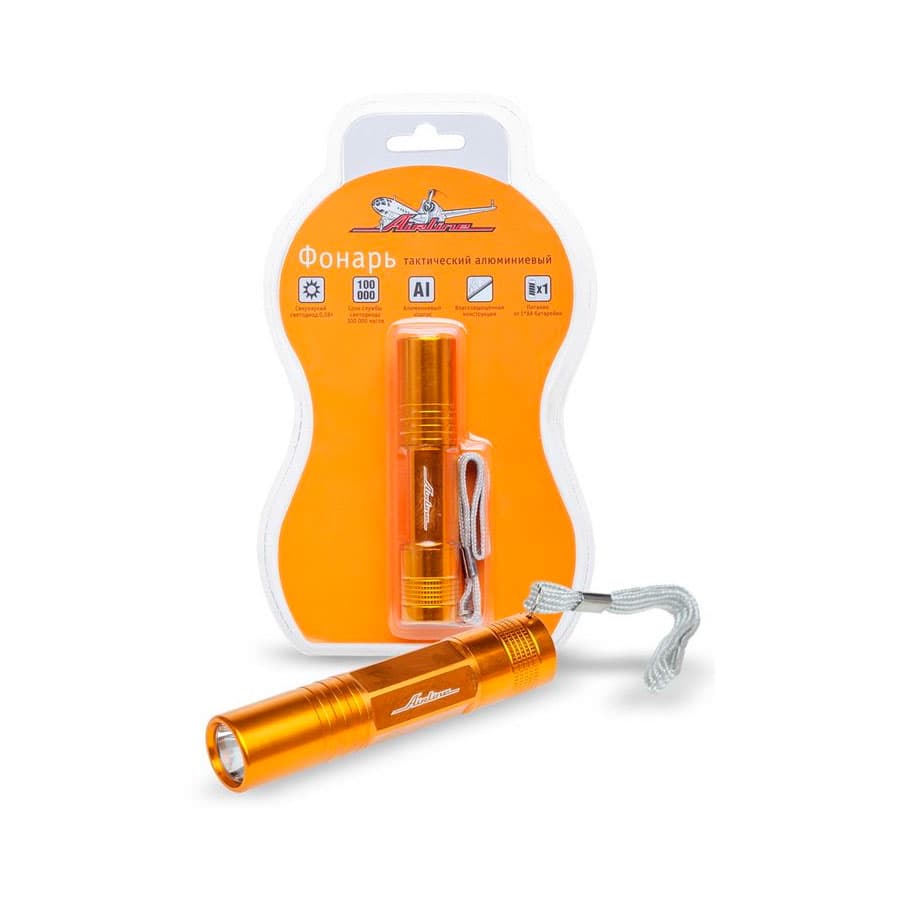 Компактный алюминиевый фонарик, благодаря своим компактным размерам, широко используется на бытовом уровне. Фонарик имеет корпус ярко-оранжевого цвета и удобный шнурок для переноски. Изделие питается от 1 батарейки типа АА.