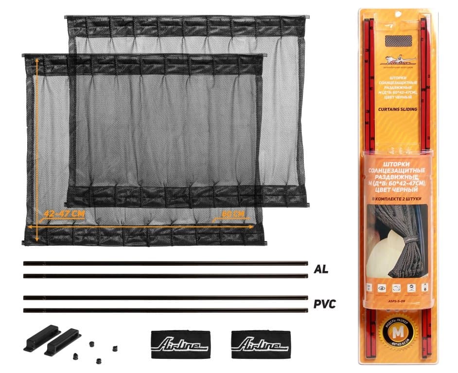 Шторки солнцезащитные, раздвижные. Большим преимуществом таких шторок является удобство в применении и большая площадь их покрытия, что обеспечивает полную конфиденциальность пассажирам. К преимуществу данного вида шторок можно также отнести их особый вид, способный украсить салон, предать ему домашний уют и комфорт. Шторки AIRLINE имеют универсальное крепление и различаются по размерам, что позволяет подобрать необходимый вариант под ваш автомобиль.