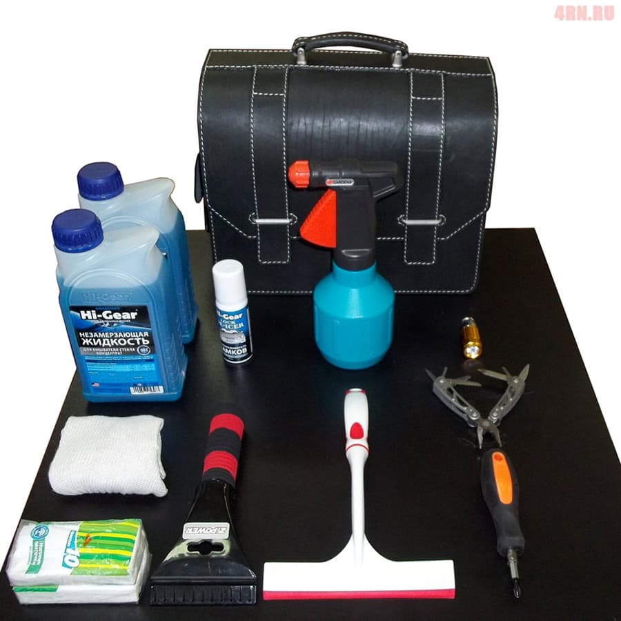 Аварийный комплект "СТАНДАРТ 3S+" (синяя нейлоновая сумка, огнетушитель ОП-2(з), аптечка, знак аварийной остановки (Евростандарт), трос 3т., перчатки х/б, жилет сигнальный)