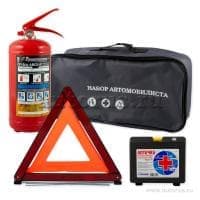 Набор автомобилиста базовый, знак аварийной остановки, аптечка, сумка, огнетушитель ОП-2 4 предмета
