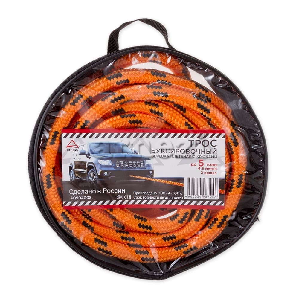 Трос буксировочный канатный 2 крюка ARNEZI длина 4,5м, 5 т. артикул A0904008