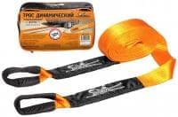 Трос динамический (стропа рывковая) российского производства (производство сертифицировано по ISO 9001). Данный тип тросов используется для вытаскивания застрявших транспортных средств. Закрепите трос к металлическим буксировочным устройствам. Аккуратно начинайте движение со скоростью 5-10 км/ч. Динамический трос растянется и затем плавным рывком передаст энергию застрявшему автомобилю.