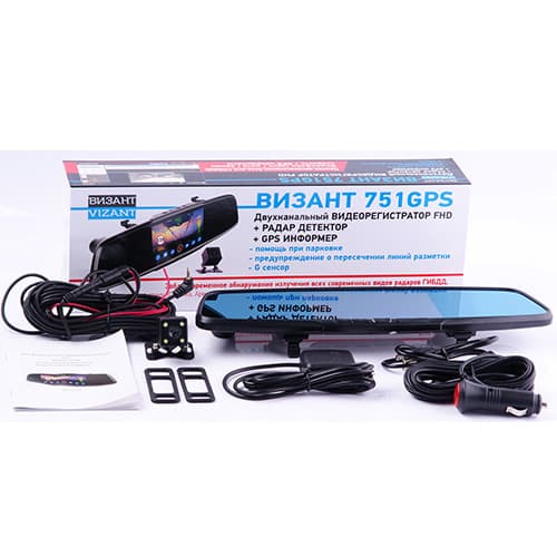 Vizant-751 GPS - удачное решения для тех, кто не хочет загромождать лобовое стекло различными аксессуарами и устройствами. Всё необходимое теперь в одном корпусе панорамного зеркала. Видеорегистратор ведёт съёмку в качестве Full HD (1920*1080) на фронтальную камеру. Задняя камера (пишущая и парковочная) создаёт видео с разрешением 640*480. Радар-детектор встроен в корпус и предупреждает о камерах и радарах, которые посылают сигнал излучения.