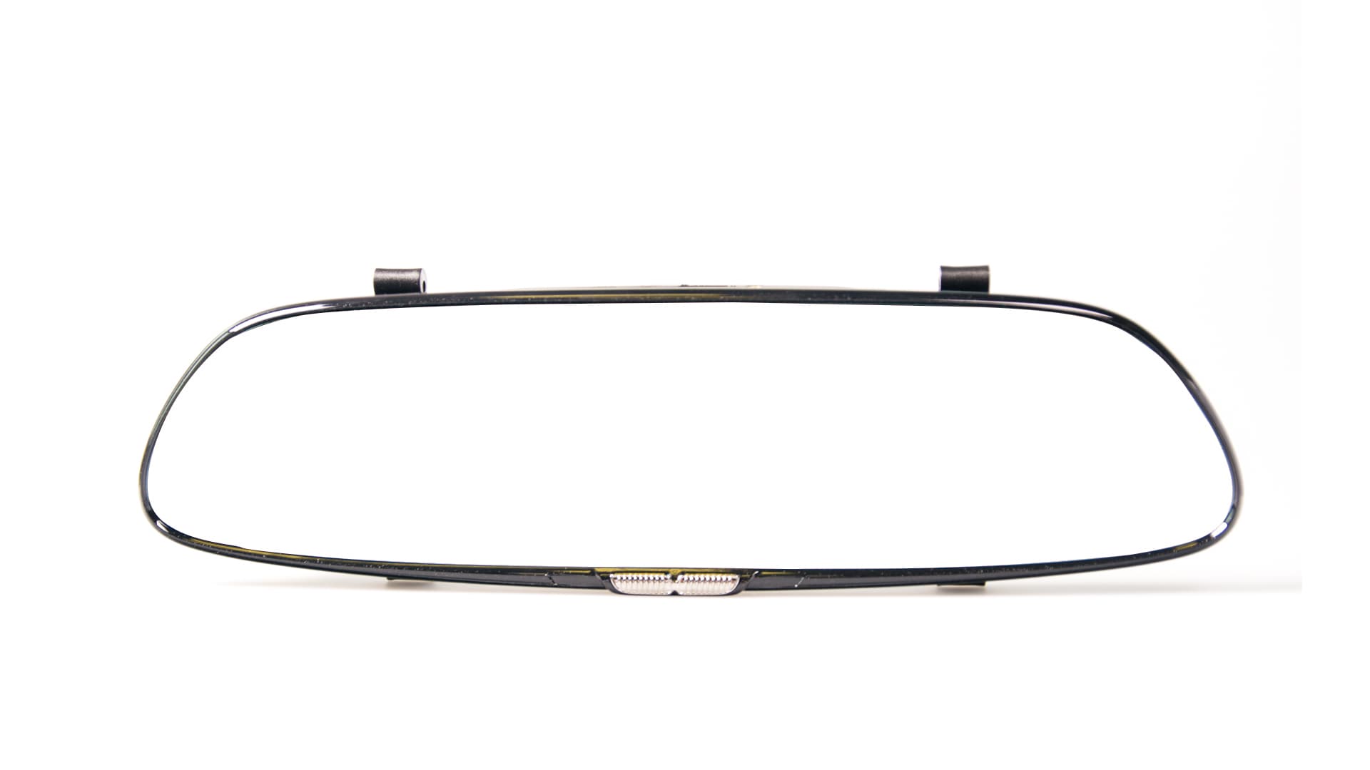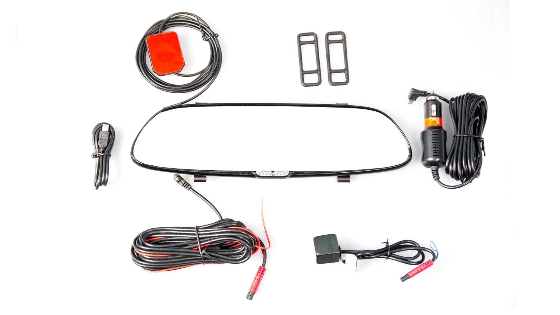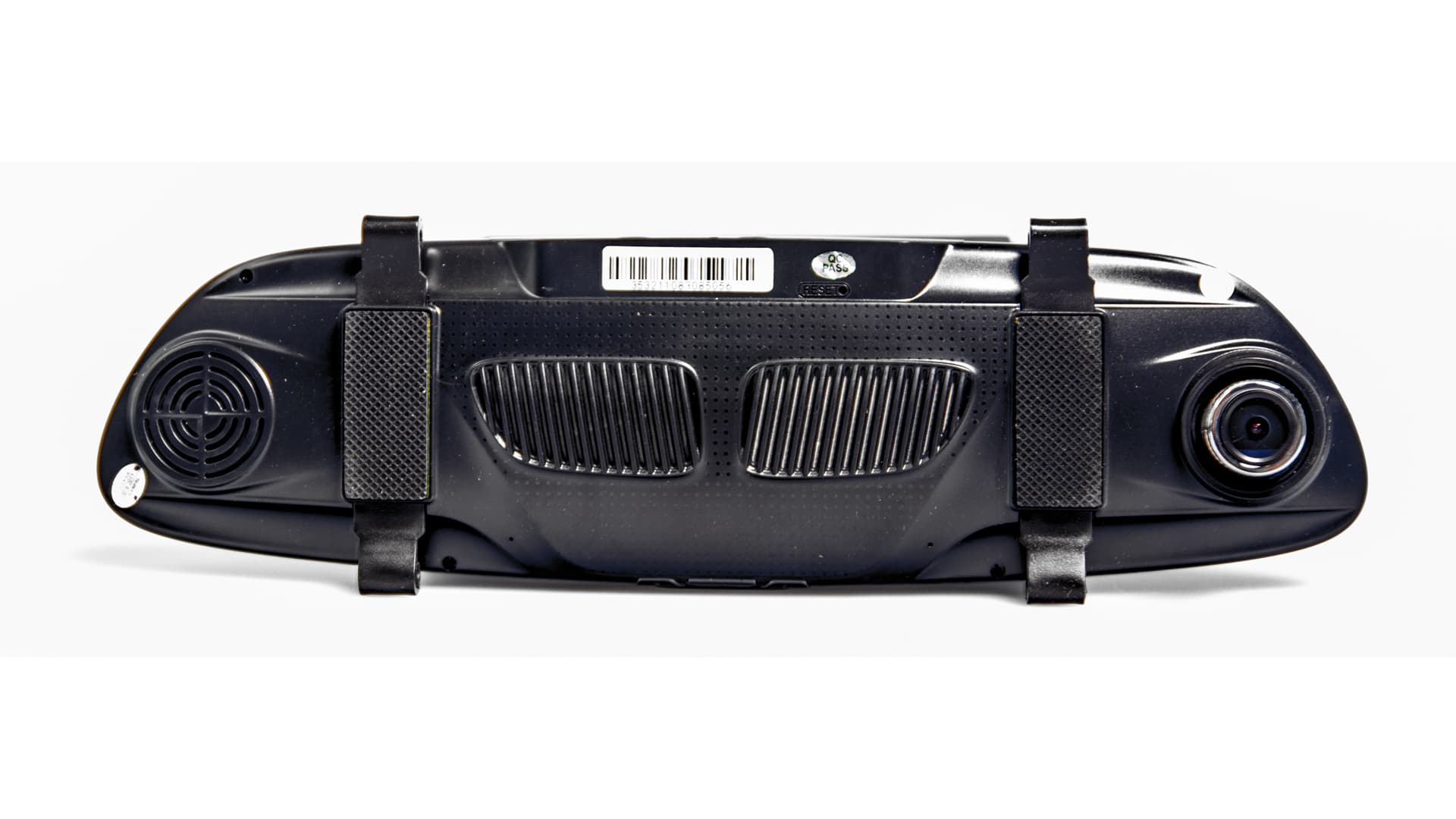 Поверхность зеркала покрыта антибликовым покрытием, а сенсорный дисплей имеет диагональ 7 дюймов. Корпус зеркала выполнен в черном цвете из качественной пластмассы. На нижней грани есть 3 кнопки управления. Обьектив зеркала-видеорегистратора вращается, поэтому есть возможность настроить его, не трогая штатное зеркало.