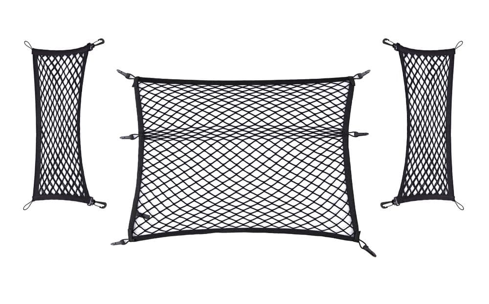 Данные сетки для багажника помогут поддерживать его в чистом и аккуратном состоянии. В комплект входят три сетки, которые крепятся при помощи специальных крючков, уже имеющихся в багажнике. Груз крепится на задней и передней стенках багажника, а также на полу.