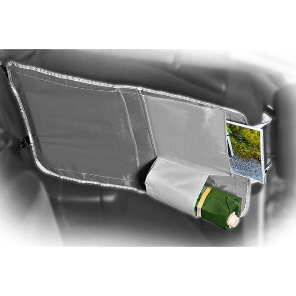 Органайзер на спинку переднего сиденья помогает не только создать удобную систему хранения в салоне автомобиля, но и обеспечить защиту для обшивки салона машины. Изделие фиксируется на спинке сиденья и оснащает ее дополнительными карманами для хранения необходимых автомобилисту документов или бумаг. Органайзер изготовлен из прочной и легко моющейся ткани, благодаря своим размерам защищает всю поверхность спинки переднего сидения от грязи и механических повреждений.