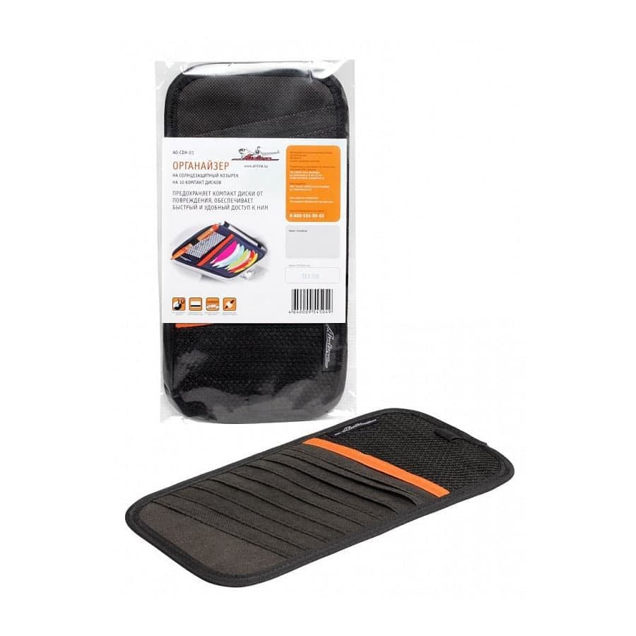 Органайзер имеет компактные размеры, предназначенные специально для солнцезащитного козырька автомобиля. Изделие оснащено отделами для хранения 10 CD-дисков, а также карманом для автомобильных документов. Полиэстер, использованный для изготовления изделия, невосприимчив к попаданию прямых солнечных лучей и позволяет продлить срок эксплуатации изделия. Изготовлен из 100% полиэстера.