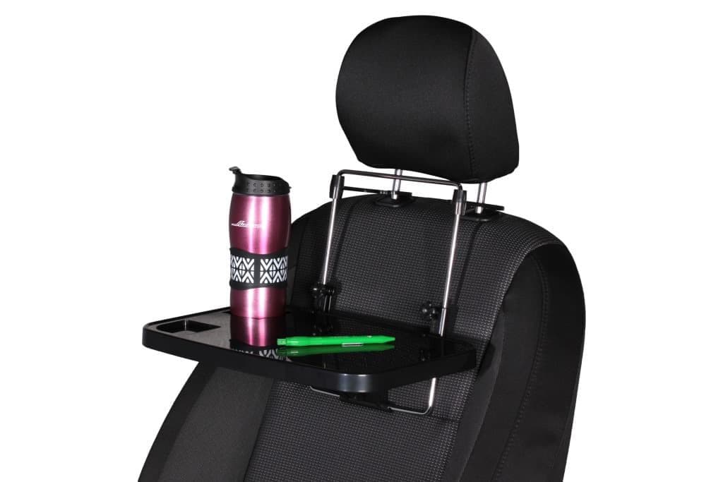 Столик дорожный на спинку сиденья/руль. Столик предназначен для компактного размещения продуктов питания, напитков и различных аксессуаров на спинке сиденья с передней или задней стороны, а также при необходимости имеет возможность крепления на рулевое колесо. Благодаря своему складному корпусу не занимает много места в салоне автомобиля. Складной столик AIRLINE будет незаменимым помощником, как при повседневных поездках, так и дальних путешествиях.