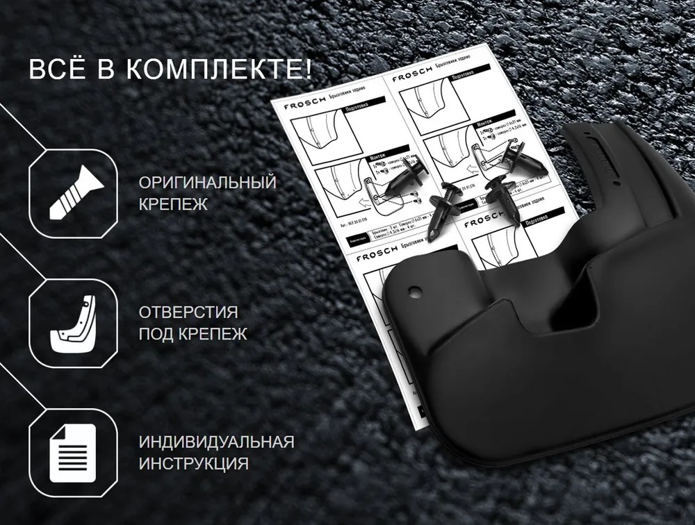 Эффективно защищают днище кузова от грязи и воды, минимизируют вероятность выброса дорожные гальки из-под колес Вашего автомобиля. Формируют аэродинамический поток воздуха, создаваемый при движении вокруг кузова таким образом, чтобы максимально уменьшить образование грязевой измороси, оседающей на Вашей машине. Являясь эстетичным завершением колесной арки, подчеркивают красоту и изящество формы Вашего автомобиля.