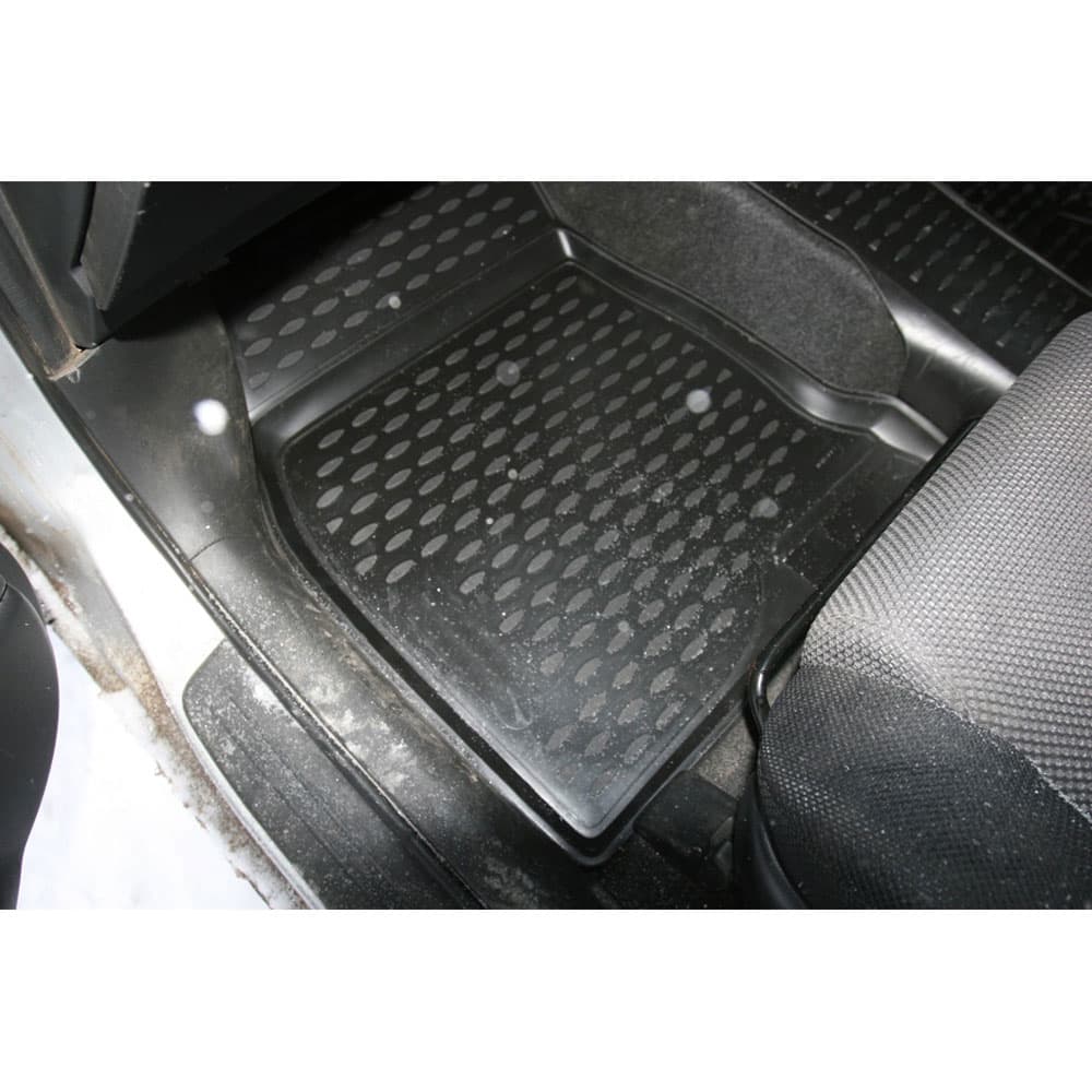 Эксплуатация. Полиуретановые коврики в два с половиной раза легче резиновых, сохраняют форму, легко вынимаются и укладываются на место. Легко моются, устойчивые к износу, идеально вписываются в интерьер. За счет свойств материала и профиля текстуры коврики не скользят. Форма передней части водительского ковра, уходящая под педаль акселератора, исключает нештатное зацепление педали за ковер. Коврики могут эксплуатироваться в самых суровых климатических условиях, сохраняя при этом физико-механические свойства.