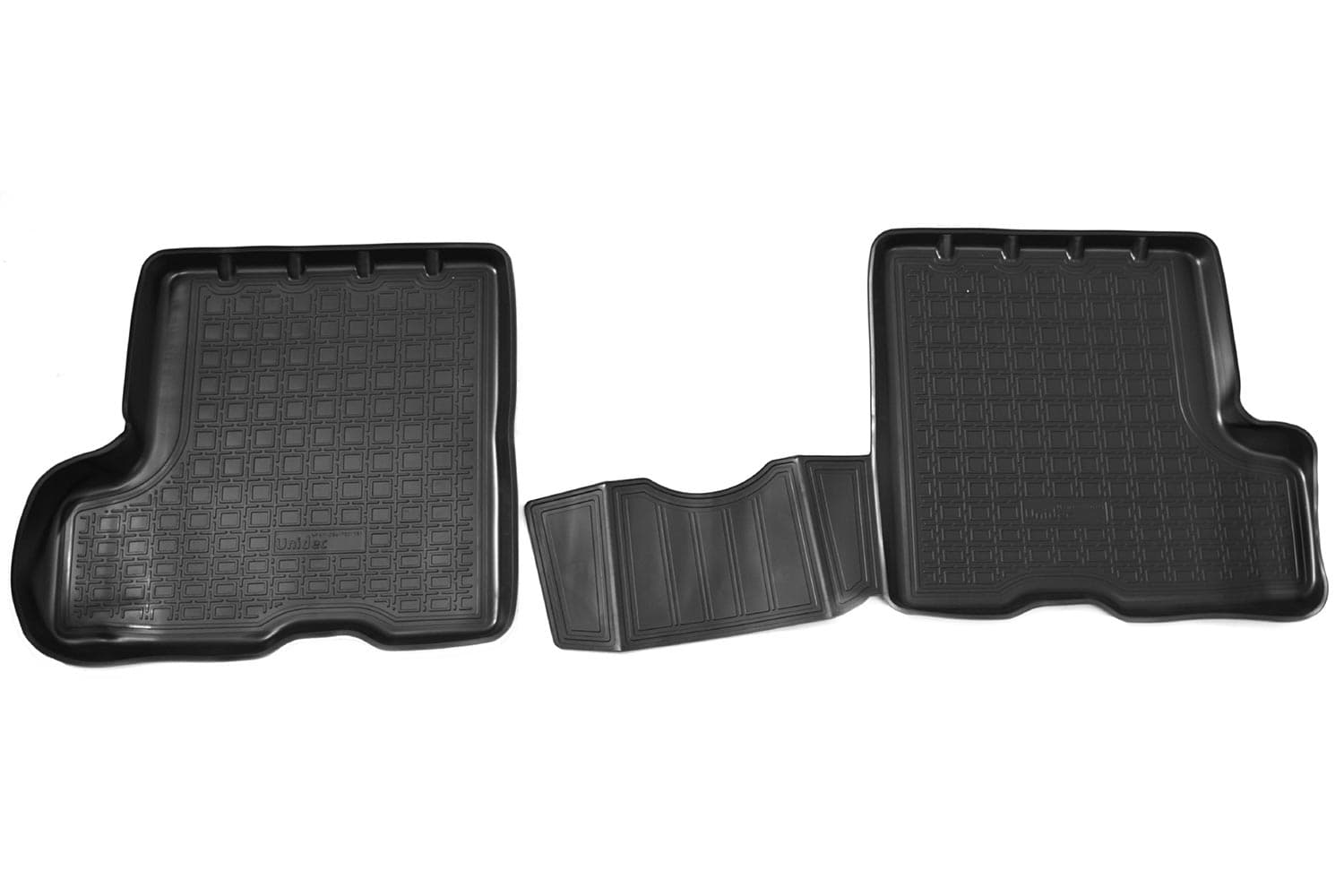 Разрабатываются точно под контуры конкретного автомобиля, что обеспечивает 100% идеальную применяемость. Они идеально прилегают к полу автомобиля в отведенном им месте.