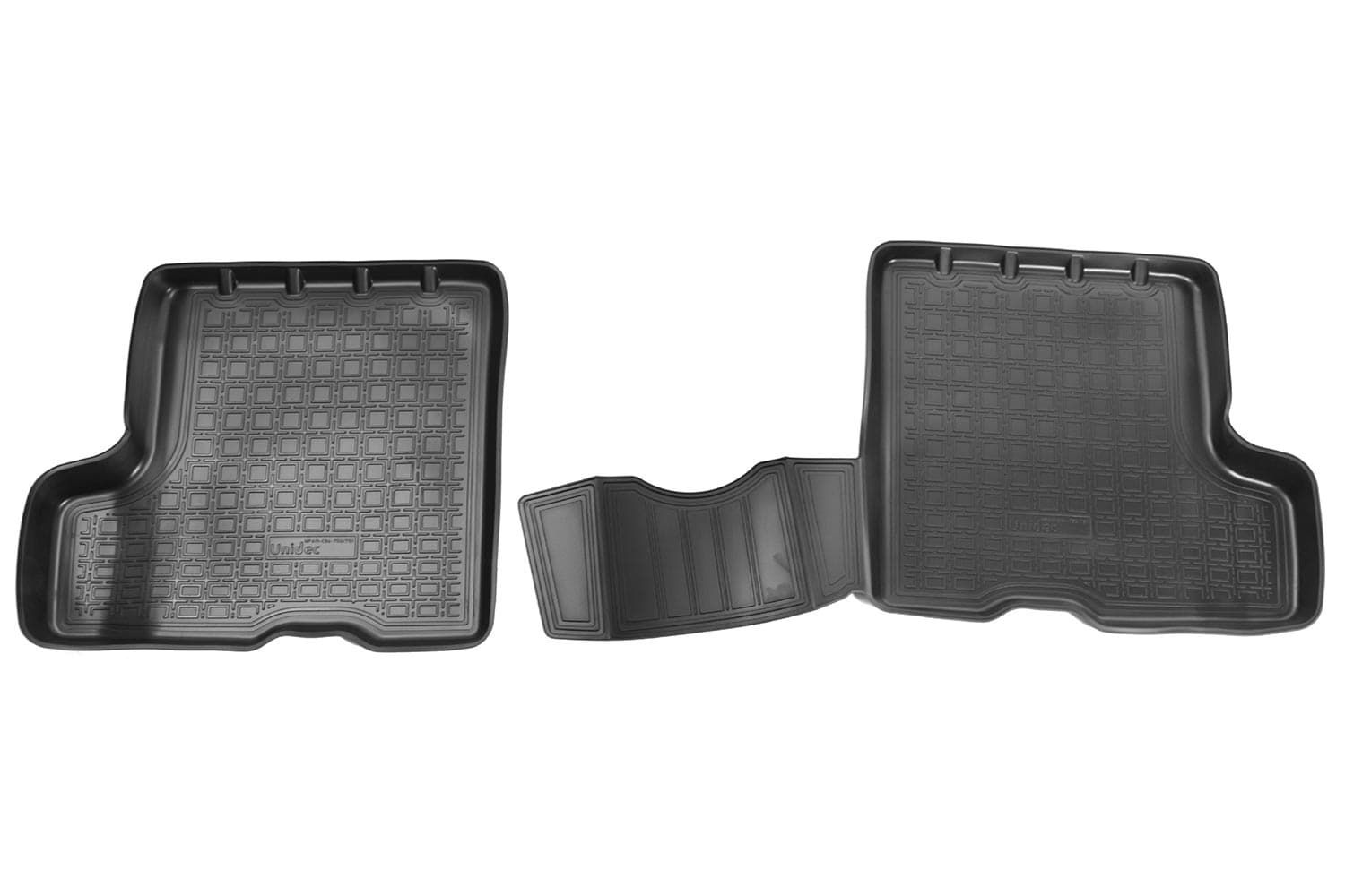 Разрабатываются точно под контуры конкретного автомобиля, что обеспечивает 100% идеальную применяемость. Они идеально прилегают к полу автомобиля в отведенном им месте.