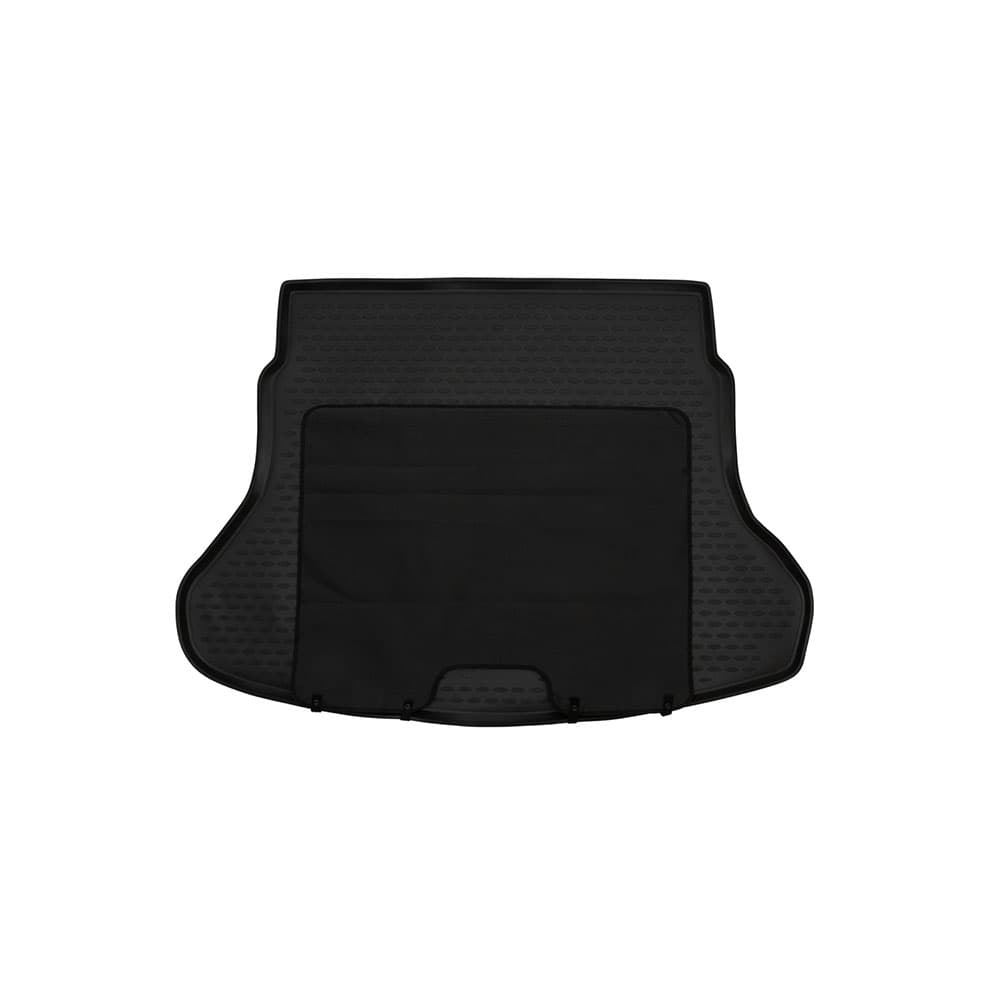 Коврик для багажника Element с бортиком черного цвета, артикул ELEMENT.SET.002 изготовлен с учетом всех особенностей багажного отделения автомобиля Hyundai Solaris 2017-2020.