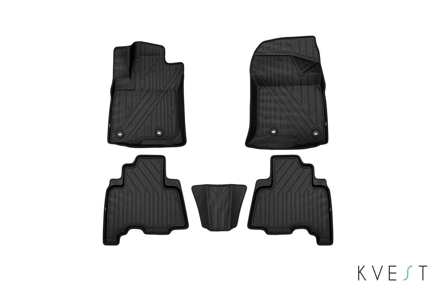При производстве автомобильных ковриков KVEST использован инновационный материал Polystar, с ярко выраженной шероховатой поверхностью, которая обеспечивает противоскользящий эффект. Технологичный дизайн рисунка и нубуковая окантовочная лента придают завершенность и подчеркивают исключительность продукта. Каждый набор упакован в коробку с инструкцией по установке фиксаторов и брошюрой, содержащей описание всех достоинств ковров Kvest.