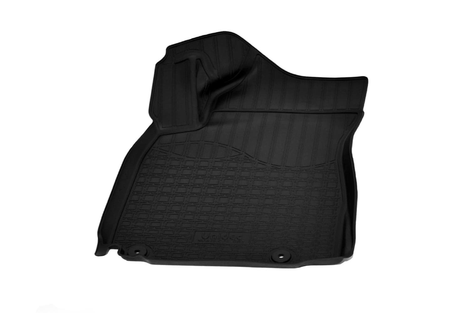 Имеют не скользящую поверхность и обеспечивают безопасное управление автомобилем, а также контролем ситуации на дороге. Изготавливаются из полиуретана, который по всем своим характеристикам превосходит резину. Во-первых, он обладает гораздо большим диапазоном твердости. Во-вторых, меньше подвержен стиранию и эластичен. В-третьих, он менее подвержен разрыву и деформациям. Коврик стоек к маслу, бензину и кислотам.