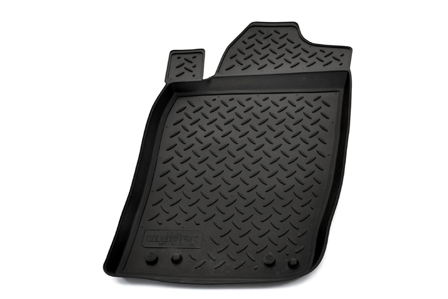Имеют не скользящую поверхность и обеспечивают безопасное управление автомобилем, а также контролем ситуации на дороге. Изготавливаются из полиуретана, который по всем своим характеристикам превосходит резину. Во-первых, он обладает гораздо большим диапазоном твердости. Во-вторых, меньше подвержен стиранию и эластичен. В-третьих, он менее подвержен разрыву и деформациям. Коврик стоек к маслу, бензину и кислотам.
