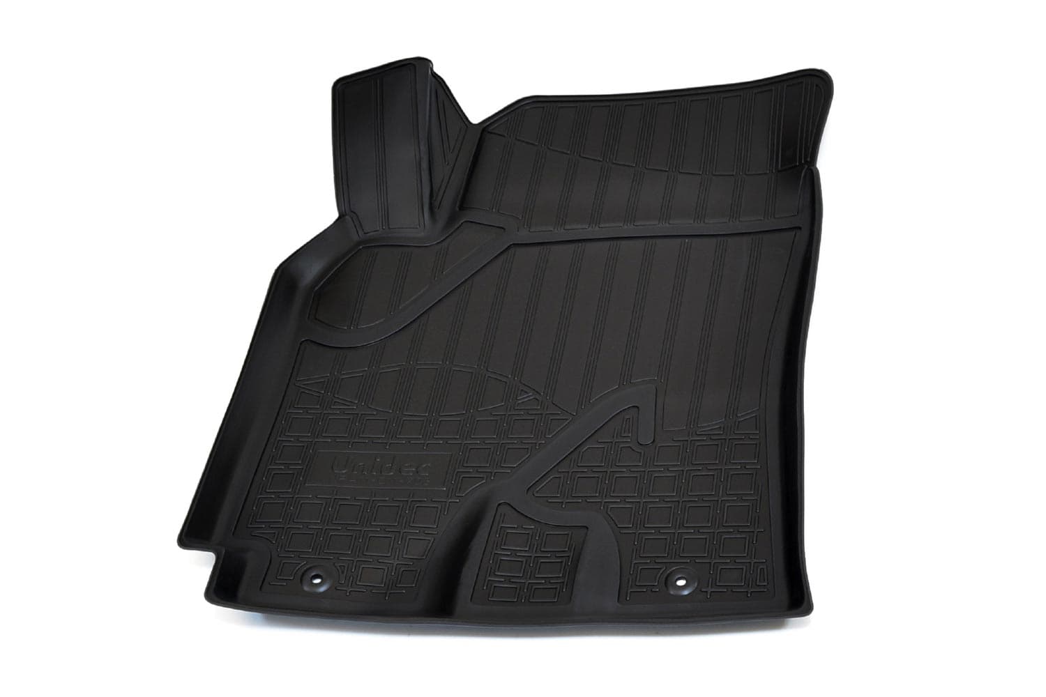 Имеют не скользящую поверхность и обеспечивают безопасное управление автомобилем, а также контролем ситуации на дороге. Изготавливаются из полиуретана, который по всем своим характеристикам превосходит резину. Во-первых, он обладает гораздо большим диапазоном твердости. Во-вторых, меньше подвержен стиранию и эластичен. В-третьих, он менее подвержен разрыву и деформациям. Коврик стоек к маслу, бензину и кислотам.
