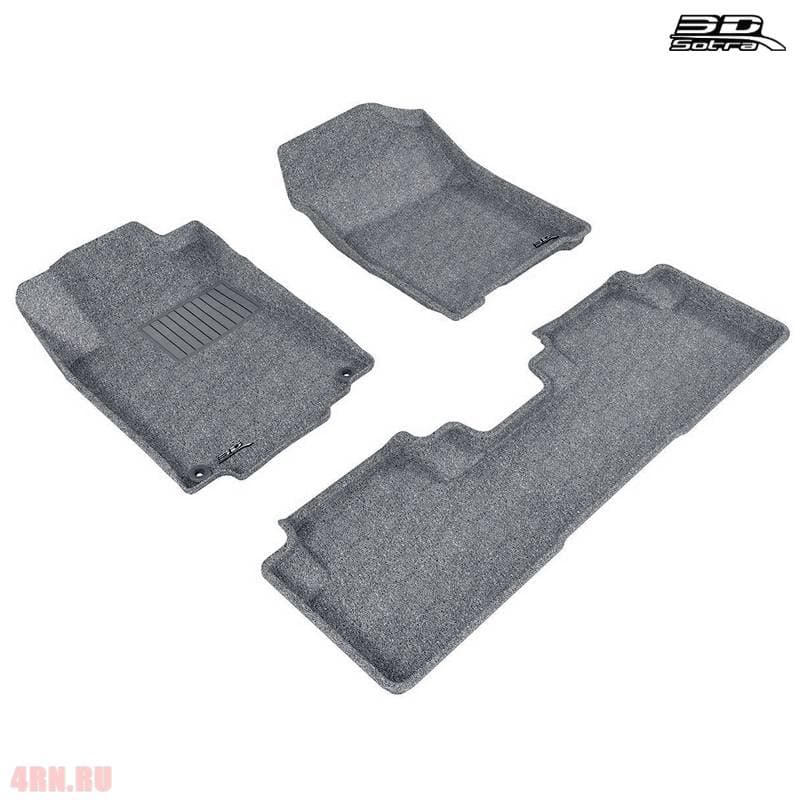 Премиальные коврики Sotra 3D STR74-00009 серого цвета, для автомобиля Honda CR-V 2002-2007 с высоким бортиком, изготовлены из износоустойчивого трехслойного текстиля.
