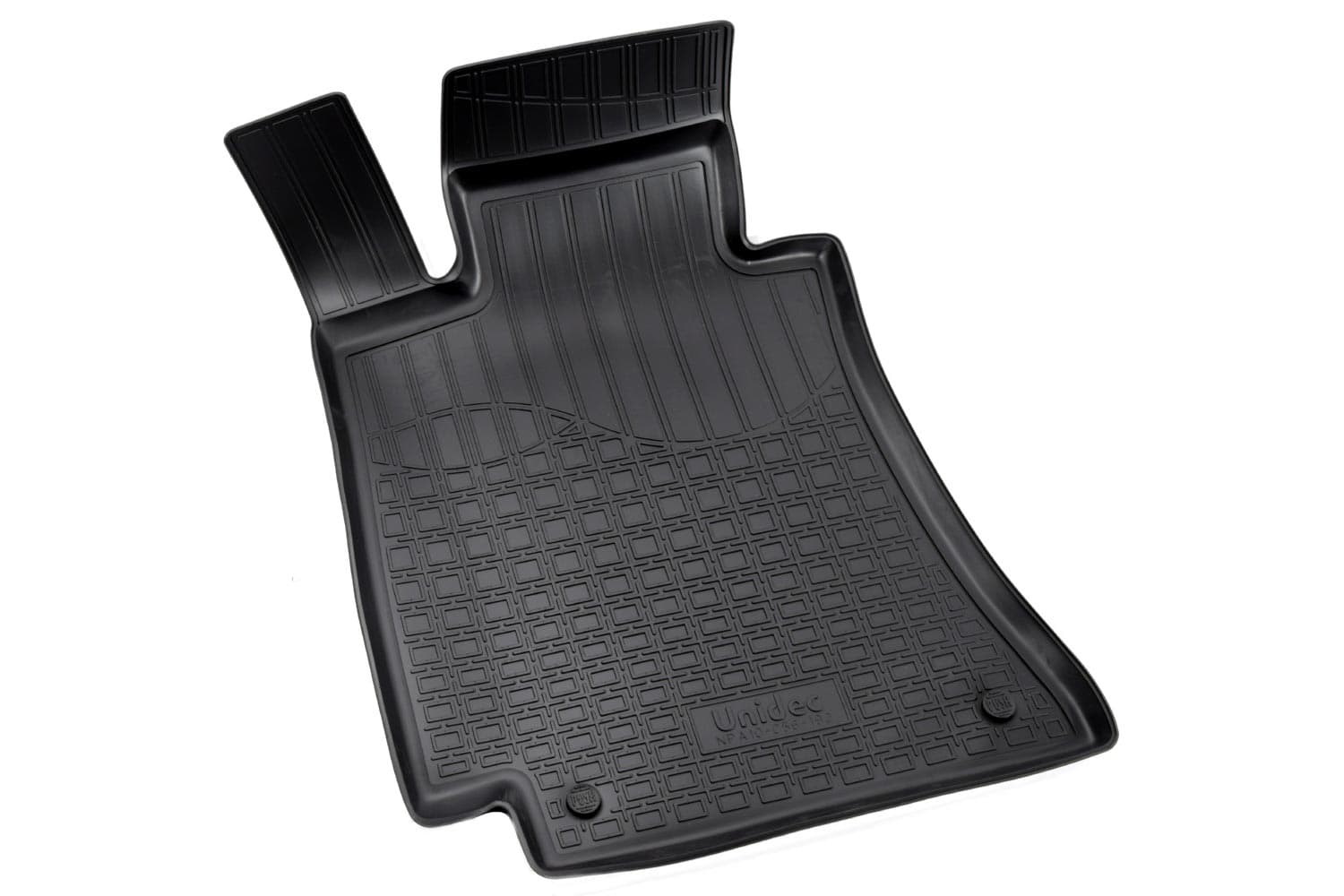 Имеют не скользящую поверхность и обеспечивают безопасное управление автомобилем, а также контролем ситуации на дороге. Изготавливаются из полиуретана, который по всем своим характеристикам превосходит резину. Во-первых, он обладает гораздо большим диапазоном твердости. Во-вторых, меньше подвержен стиранию и эластичен. В-третьих, он менее подвержен разрыву и деформациям. Коврик стоек к маслу, бензину и кислотам.