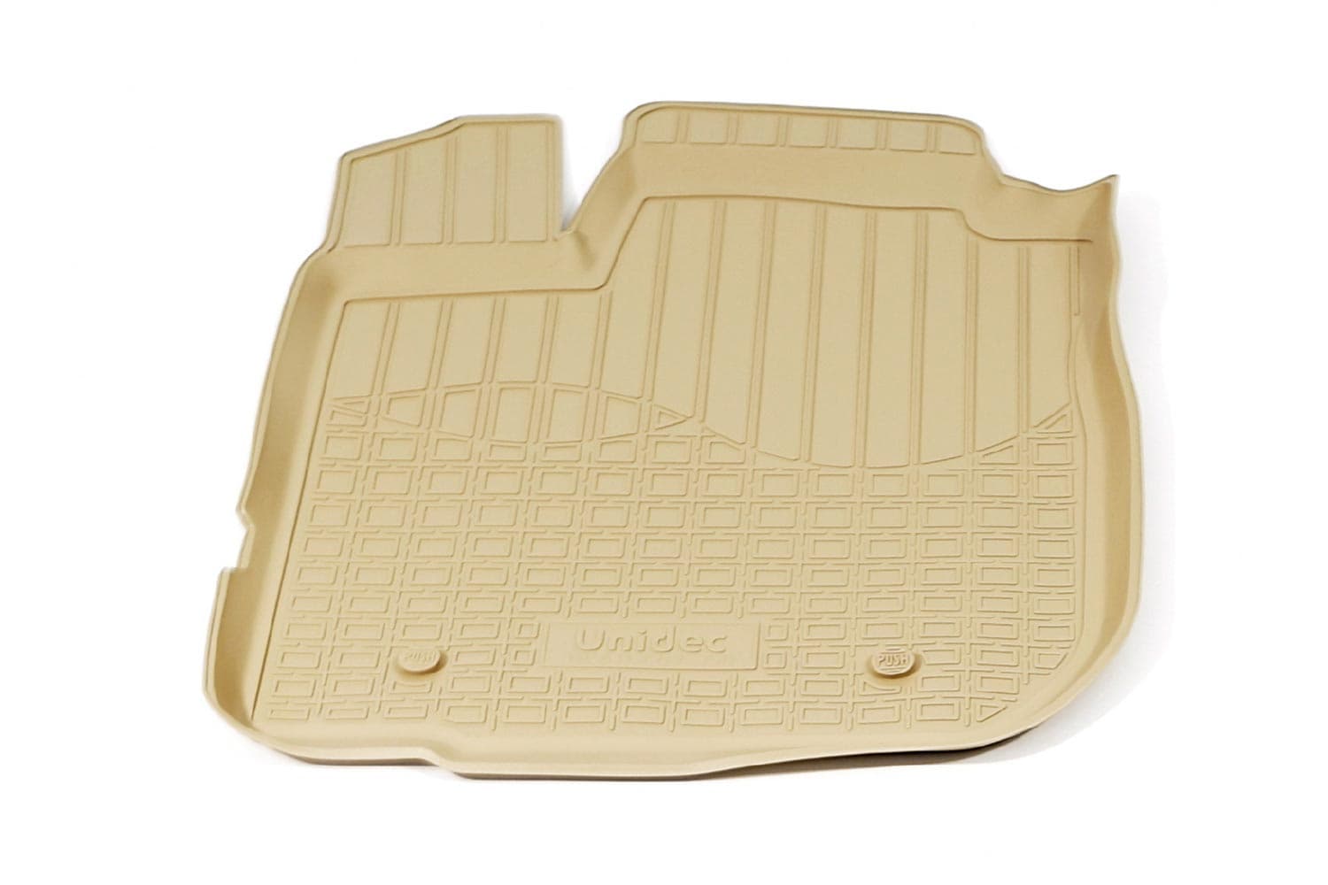 Имеют не скользящую поверхность и обеспечивают безопасное управление автомобилем, а также контролем ситуации на дороге. Изготавливаются из полиуретана, который по всем своим характеристикам превосходит резину. Во-первых, он обладает гораздо большим диапазоном твердости. Во-вторых, меньше подвержен стиранию и эластичен. В-третьих, он менее подвержен разрыву и деформациям. Коврик стоек к маслу, бензину и кислотам.