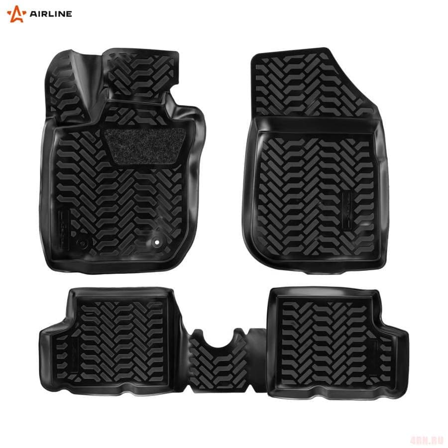 Ковры имеют современный рисунок имитирующий протектор шин. У большинства моделей водительский коврик имеет ворсовый подпятник для предотвращения соскальзывания ноги, а так же оснащены крепежом для крепления их в штатных местах.