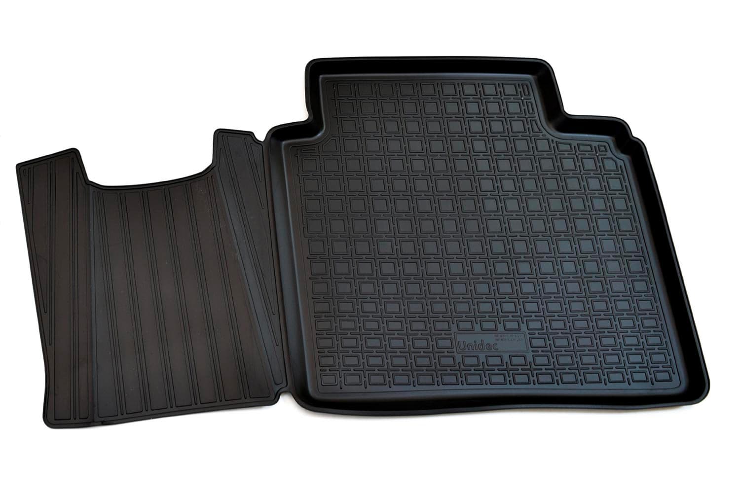 Разрабатываются точно под контуры конкретного автомобиля, что обеспечивает 100% идеальную применяемость. Они идеально прилегают к полу автомобиля в отведенном им месте.