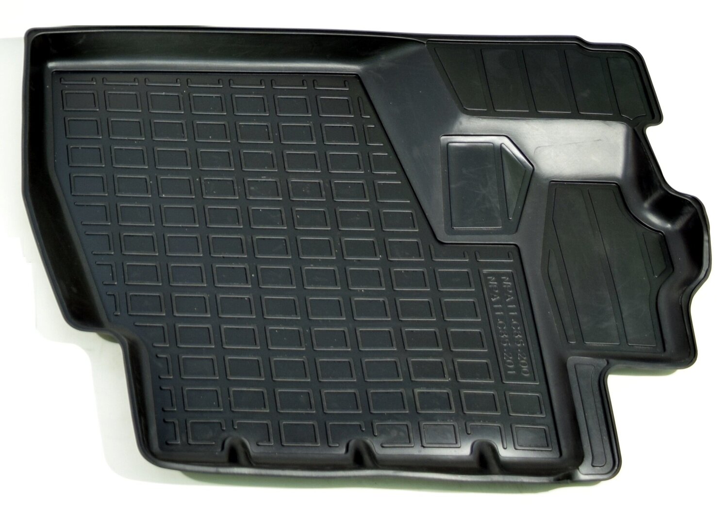 Разрабатываются точно под контуры конкретного автомобиля, что обеспечивает 100% идеальную применяемость. Они идеально прилегают к полу автомобиля в отведенном им месте.