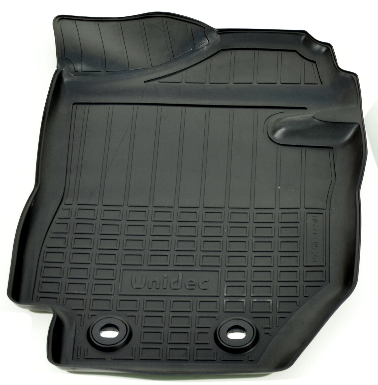 Имеют не скользящую поверхность и обеспечивают безопасное управление автомобилем, а также контролем ситуации на дороге. Изготавливаются из полиуретана, который по всем своим характеристикам превосходит резину. Во-первых, он обладает гораздо большим диапазоном твердости. Во-вторых, меньше подвержен стиранию и эластичен. В-третьих, он менее подвержен разрыву и деформациям. Коврик стоек к маслу, бензину и кислотам.