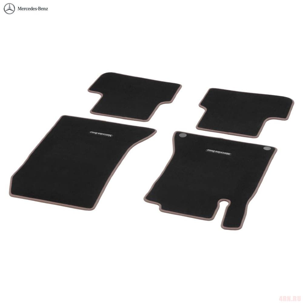 Велюровые коврики CLASSIC, комплект из 4 шт. Элегантный высококачественный коврик из стеганого велюра с вышитой надписью «Mercedes-Benz». Черный, окантовка цвета «Коричневый орех»