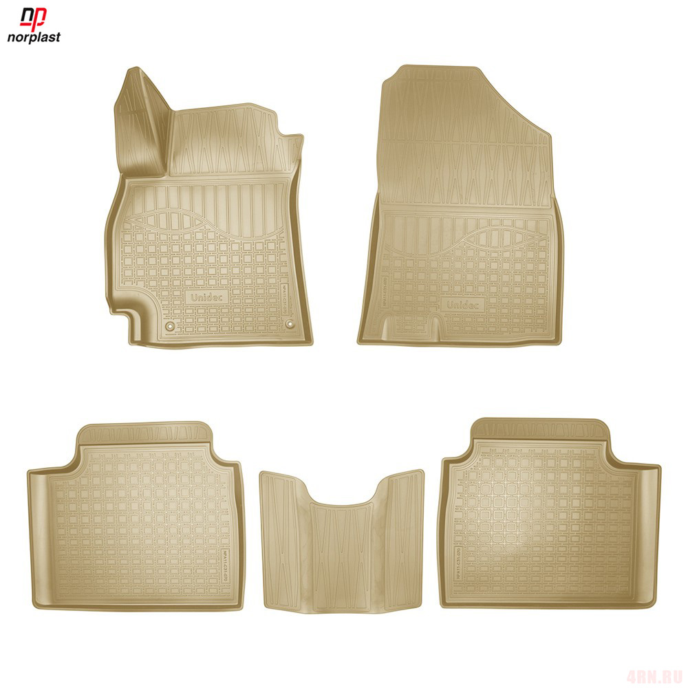 Имеют не скользящую поверхность и обеспечивают безопасное управление автомобилем, а также контролем ситуации на дороге. Изготавливаются из полиуретана, который по всем своим характеристикам превосходит резину. Во-первых, он обладает гораздо большим диапазоном твердости. Во-вторых, меньше подвержен стиранию и эластичен. В-третьих, он менее подвержен разрыву и деформациям. Коврик стоек к маслу, бензину и кислотам.