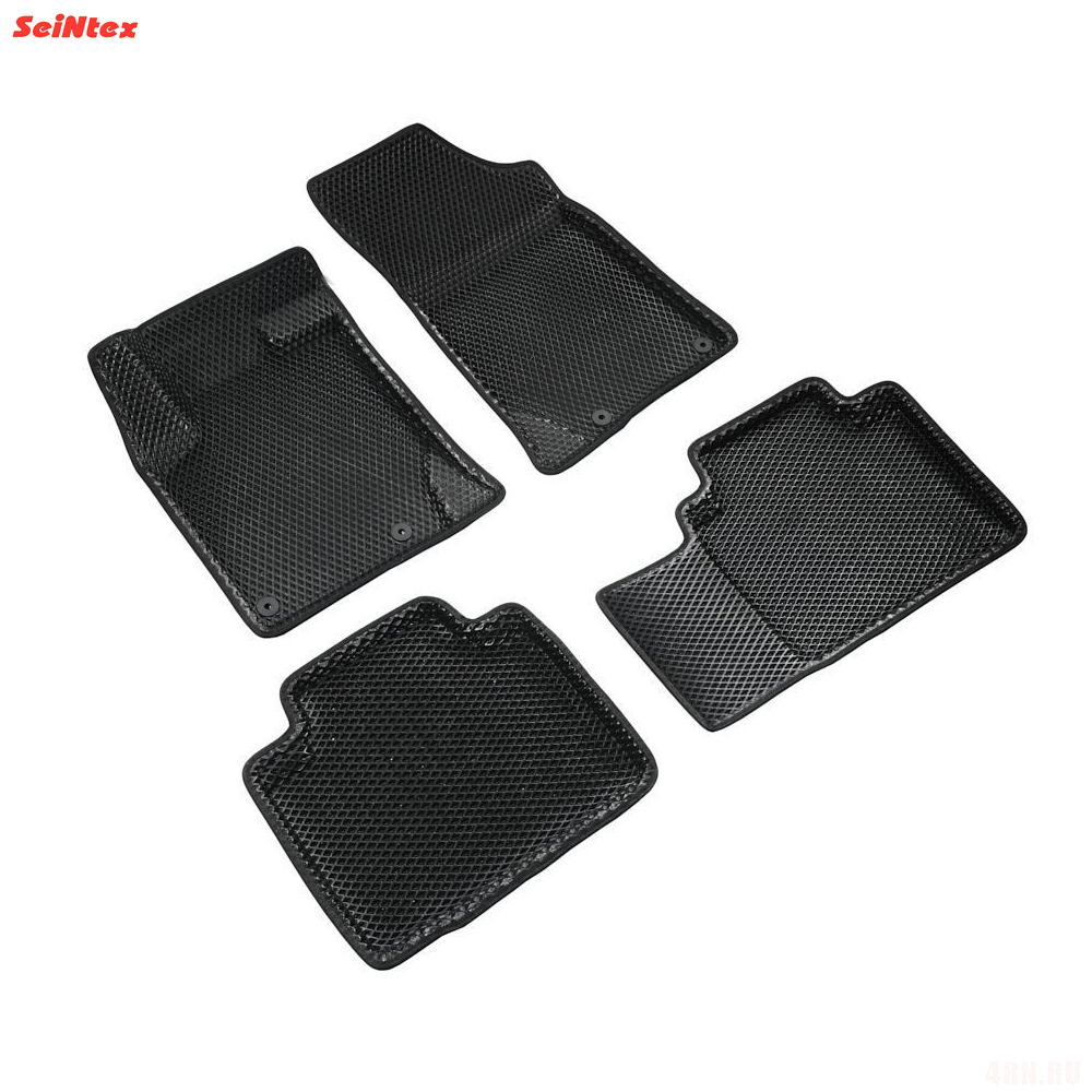 Автомобильные коврики Eva изготовлены из инновационного полимерного нетоксичного материала ЭВА. Коврики имеют привлекательную и практичную структуру в виде ячеек, которая не дает воде, пыли и снегу разлетаться по салону автомобиля. Попадая в ячейки в виде ромба, грязь скапливается и остается внутри. Для того, чтобы очистить коврик, его просто нужно встряхнуть.
