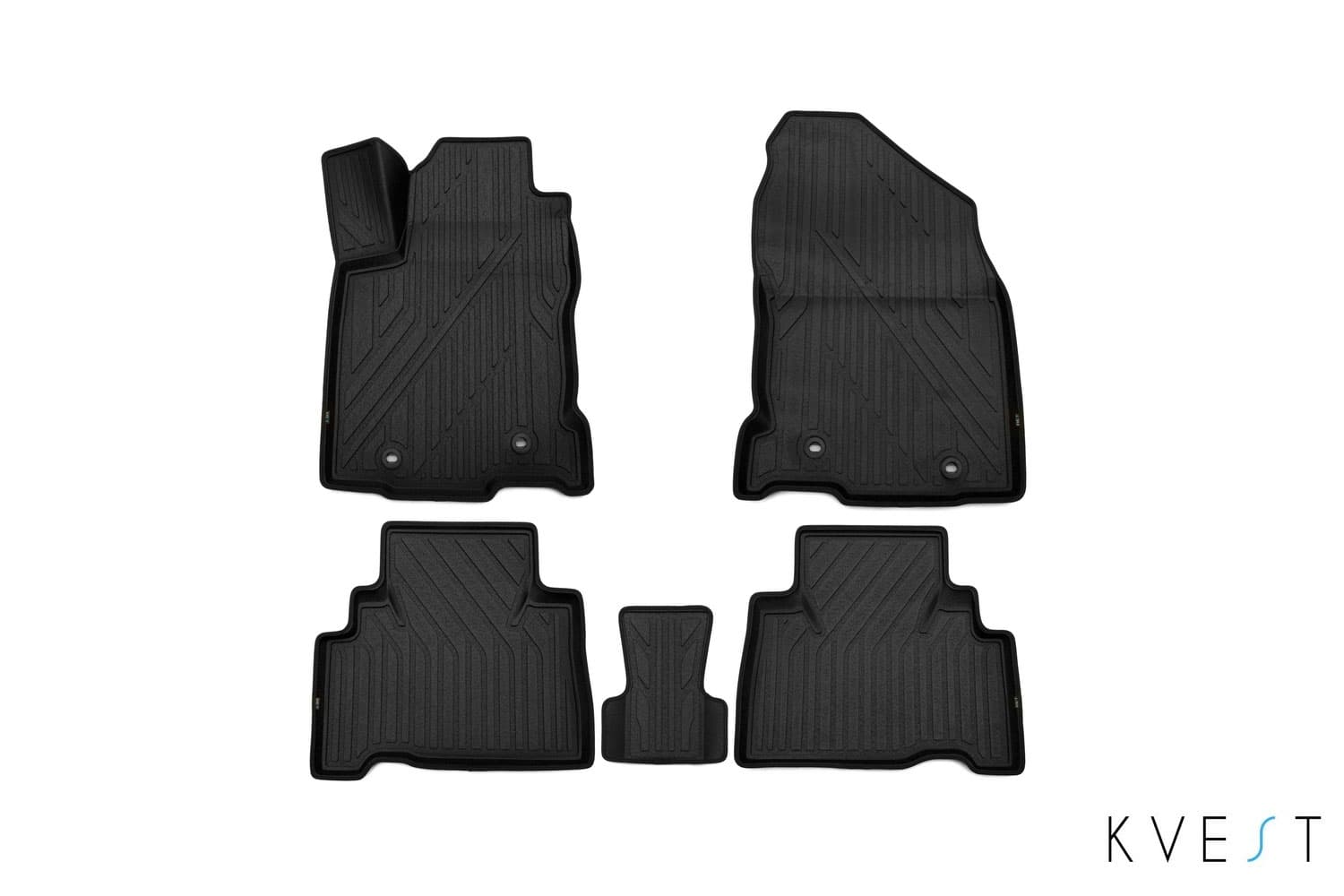 При производстве автомобильных ковриков KVEST использован инновационный материал Polystar, с ярко выраженной шероховатой поверхностью, которая обеспечивает противоскользящий эффект. Технологичный дизайн рисунка и нубуковая окантовочная лента придают завершенность и подчеркивают исключительность продукта. Каждый набор упакован в коробку с инструкцией по установке фиксаторов и брошюрой, содержащей описание всех достоинств ковров Kvest.