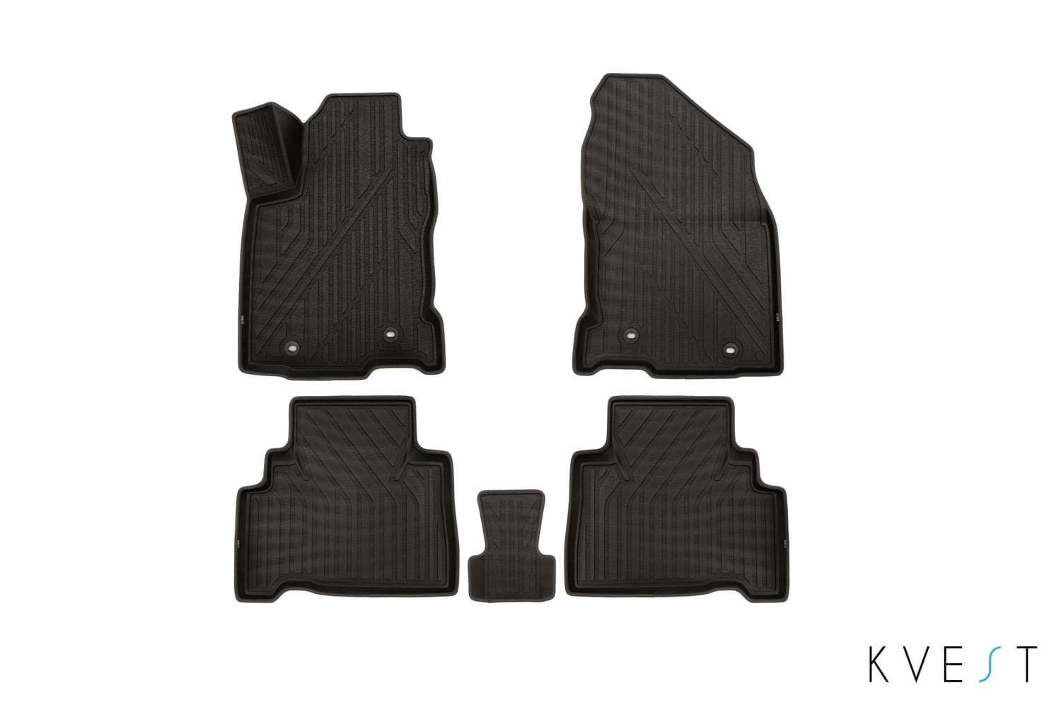 При производстве автомобильных ковриков KVEST использован инновационный материал Polystar, с ярко выраженной шероховатой поверхностью, которая обеспечивает противоскользящий эффект. Технологичный дизайн рисунка и нубуковая окантовочная лента придают завершенность и подчеркивают исключительность продукта. Каждый набор упакован в коробку с инструкцией по установке фиксаторов и брошюрой, содержащей описание всех достоинств ковров Kvest.