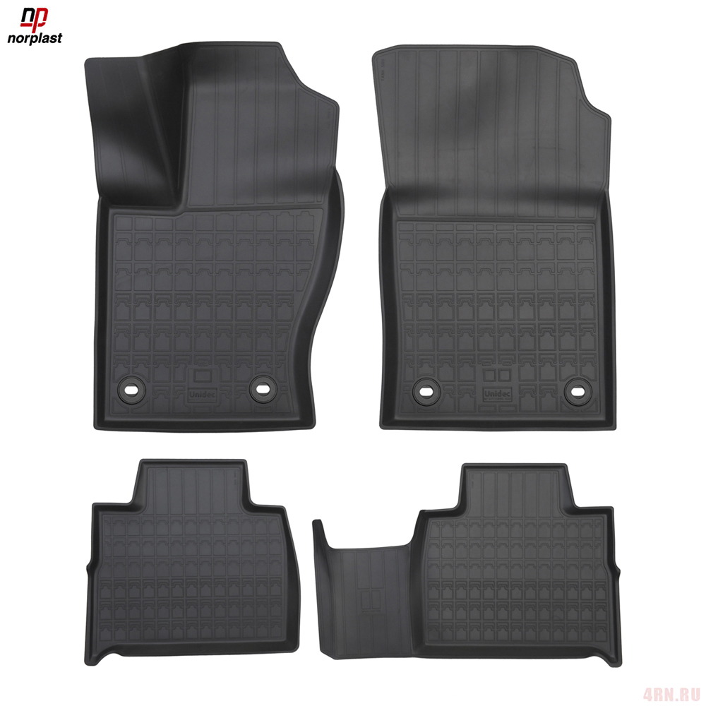 Разрабатываются точно под контуры конкретного автомобиля, что обеспечивает 100% идеальную применяемость. Они идеально прилегают к полу автомобиля в отведенном им месте.