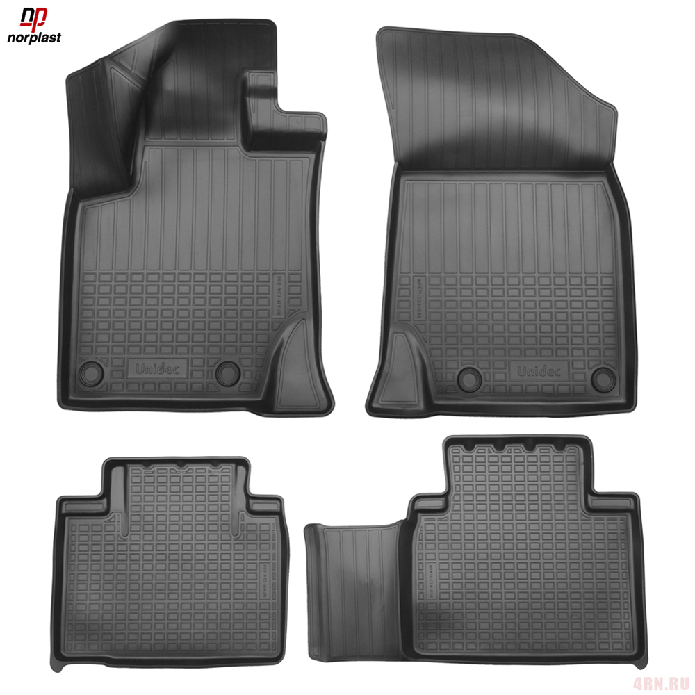 Разрабатываются точно под контуры конкретного автомобиля, что обеспечивает 100% идеальную применяемость. Они идеально прилегают к полу автомобиля в отведенном им месте.