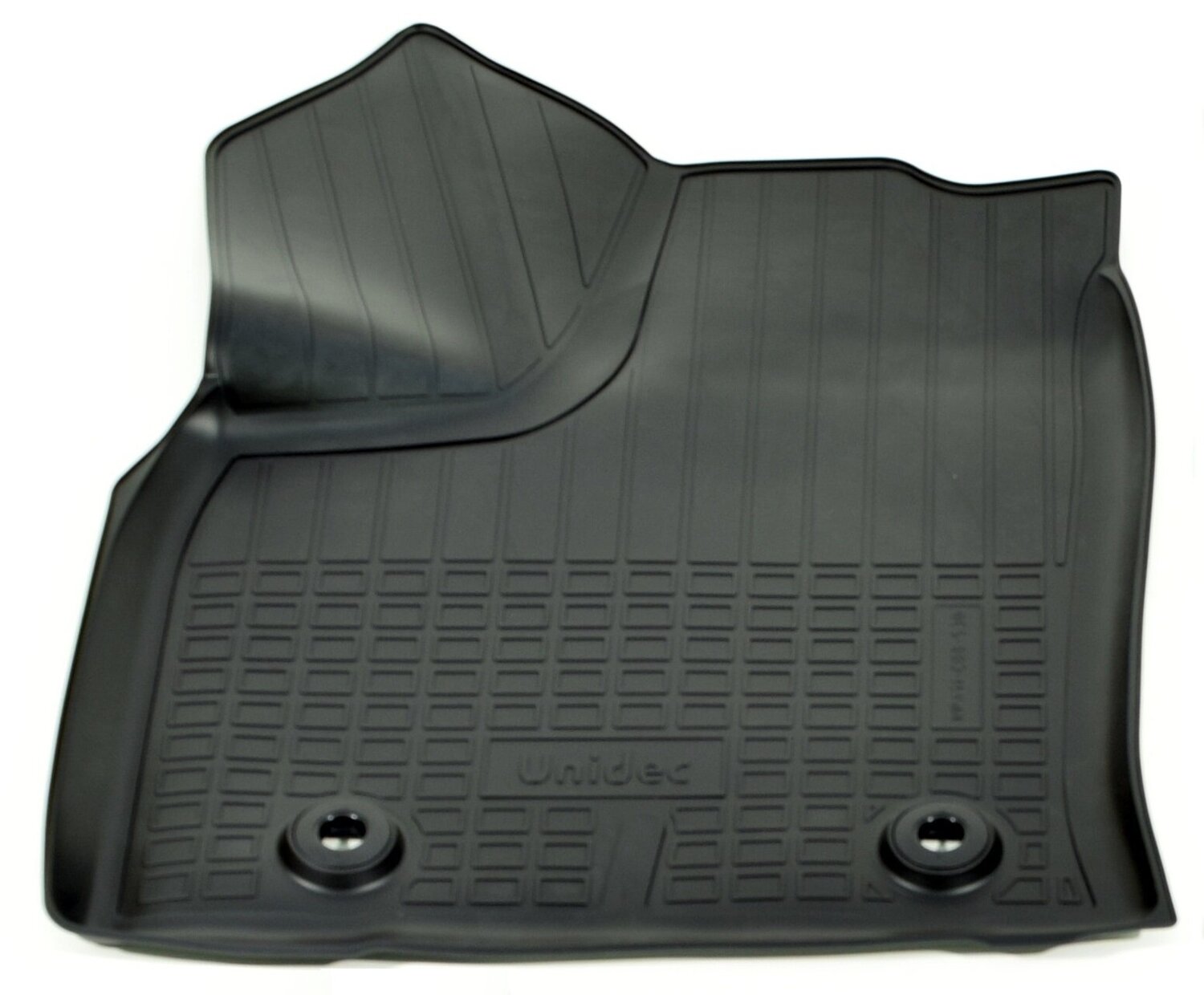 Имеют не скользящую поверхность и обеспечивают безопасное управление автомобилем, а также контролем ситуации на дороге. Изготавливаются из полиуретана, который по всем своим характеристикам превосходит резину. Во-первых, он обладает гораздо большим диапазоном твердости. Во-вторых, меньше подвержен стиранию и эластичен. В-третьих, он менее подвержен разрыву и деформациям. Коврик стоек к маслу, бензину и кислотам.