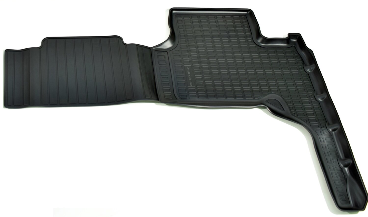 Разрабатываются точно под контуры конкретного автомобиля, что обеспечивает 100% идеальную применяемость. Они идеально прилегают к полу автомобиля в отведенном им месте.
