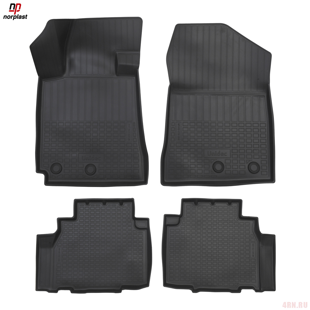 Разрабатываются точно под контуры конкретного автомобиля, что обеспечивает 100% идеальную применяемость. Они идеально прилегают к полу автомобиля в отведенном им месте.