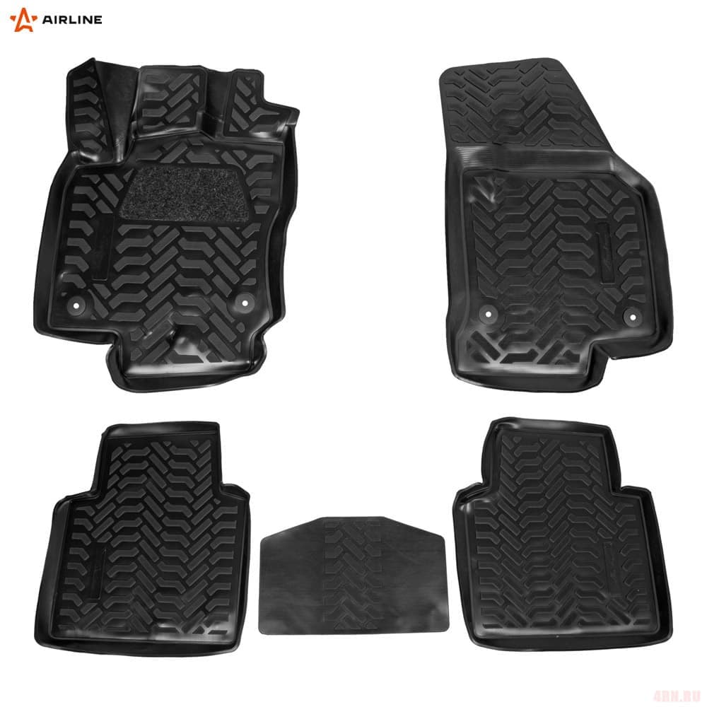 Ковры имеют современный рисунок имитирующий протектор шин. У большинства моделей водительский коврик имеет ворсовый подпятник для предотвращения соскальзывания ноги, а так же оснащены крепежом для крепления их в штатных местах.